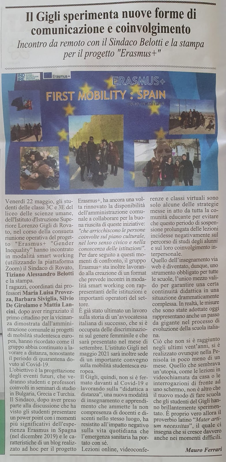 GIS -Gender Inequality in schools is the Erasmus+ project which our school "IIS Lorenzo Gigli-Rovato" won thanks to the cooperation of six European schools: Spain, Turkey (two schools), Greece, Bulgaria and Italy.
